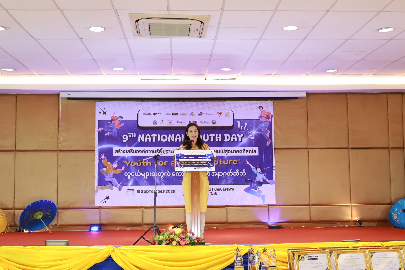 เมื่อวันที่ 15 ก.ย. 68 เวลา 09.40 น. ผู้ช่วยศาสตราจารย์ ดร.วนัสนันท์ ศิริรัตนะ ผู้อำนวยการมหาวิทยาลัยราชภัฏกำแพงเพชร แม่สอด ให้เกียรติกล่าวต้อนรับและร่วมเป็นเกียรติในการจัดกิจกรรม "วันเยาวชนแห่งชาติ 9th National Youth Day สร้างเสริมองค์ความรู้พื้นฐาน เพื่อการพัฒนาเยาวชนไปสู่อนาคตที่สดใส Youth for a better future" โดย Rays of Youth Project Thailand ภายใต้มูลนิธิช่วยไร้พรมแดน Help Without Frontiers ณ ห้องรตนมณี อาคารเฉลิมพระเกียรติ มหาวิทยาลัยราชภัฏกำแพงเพชร แม่สอด จังหวัดตาก