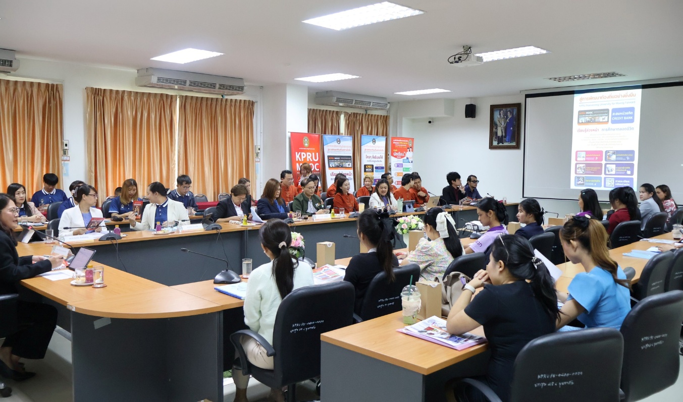 ในโอกาสนี้ อธิการบดีได้ประชาสัมพันธ์และให้ข้อมูล ระบบบริหารจัดการสื่อการเรียนการสอนออนไลน์ KPRU MOOC ซึ่งเป็นระบบสนับสนุนการเรียนรู้ตลอดชีวิต (Lifelong Learning) และเป็นส่วนหนึ่งของการพัฒนาไปสู่ความเป็นอิสระทางการเรียนรู้ เพื่อให้บริการแก่นักศึกษา นักเรียน และประชาชน นอกจากนี้ ระบบ KPRU MOOC ยังเชื่อมโยงกับการสะสมหน่วยกิต (Credit Bank) ของมหาวิทยาลัยราชภัฏกำแพงเพชรสำหรับบางรายวิชาอีกด้วย