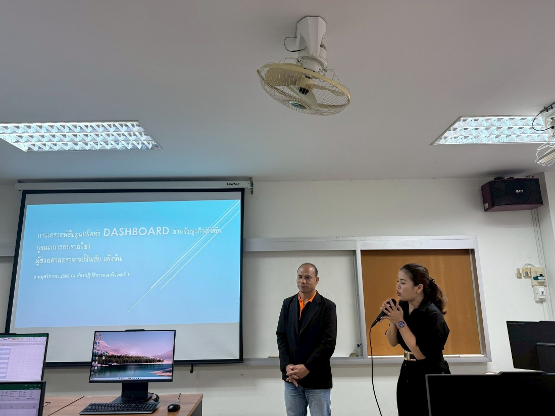 โปรแกรมวิชาการบัญชี มหาวิทยาลัยราชภัฏกำแพงเพชร แม่สอด จัดกิจกรรมอบรมบูรณาการเรียนการสอนกับการพัฒนาศตวรรษที่ 21 หัวข้อเรื่องการวิเคราะห์ข้อมูลเพื่อทำ Dashboard สำหรับธุรกิจดิจิทัล ให้กับนักศึกษาหลักสูตรบัญชี หมู่เรียน 6655201 จำนวน 10 คน และนักศึกษาหมู่เรียน 6535201 จำนวน 6 คน รวมทั้งสิ้น 16 คน ในภาคเรียนที่ 2 ปีการศึกษา 2568 โดยการบูรณาการกับรายวิชาโปรแกรมตารางการคำนวณ และรายวิชาปัญหาพิเศษทางด้านบัญชี หลักสูตรบัญชีบัณฑิต จัดในวันที่ 9 พฤศจิกายน 2568 เวลา 8.00-16.00 น. ณ ห้องปฏิบัติการคอมพิวเตอร์ มหาวิทยาลัยราชภัฏกำแพงเพชร แม่สอด โดยเรียนเชิญผู้ช่วยศาสตราจารย์วันชัย เพ็งวัน เป็นวิทยากร