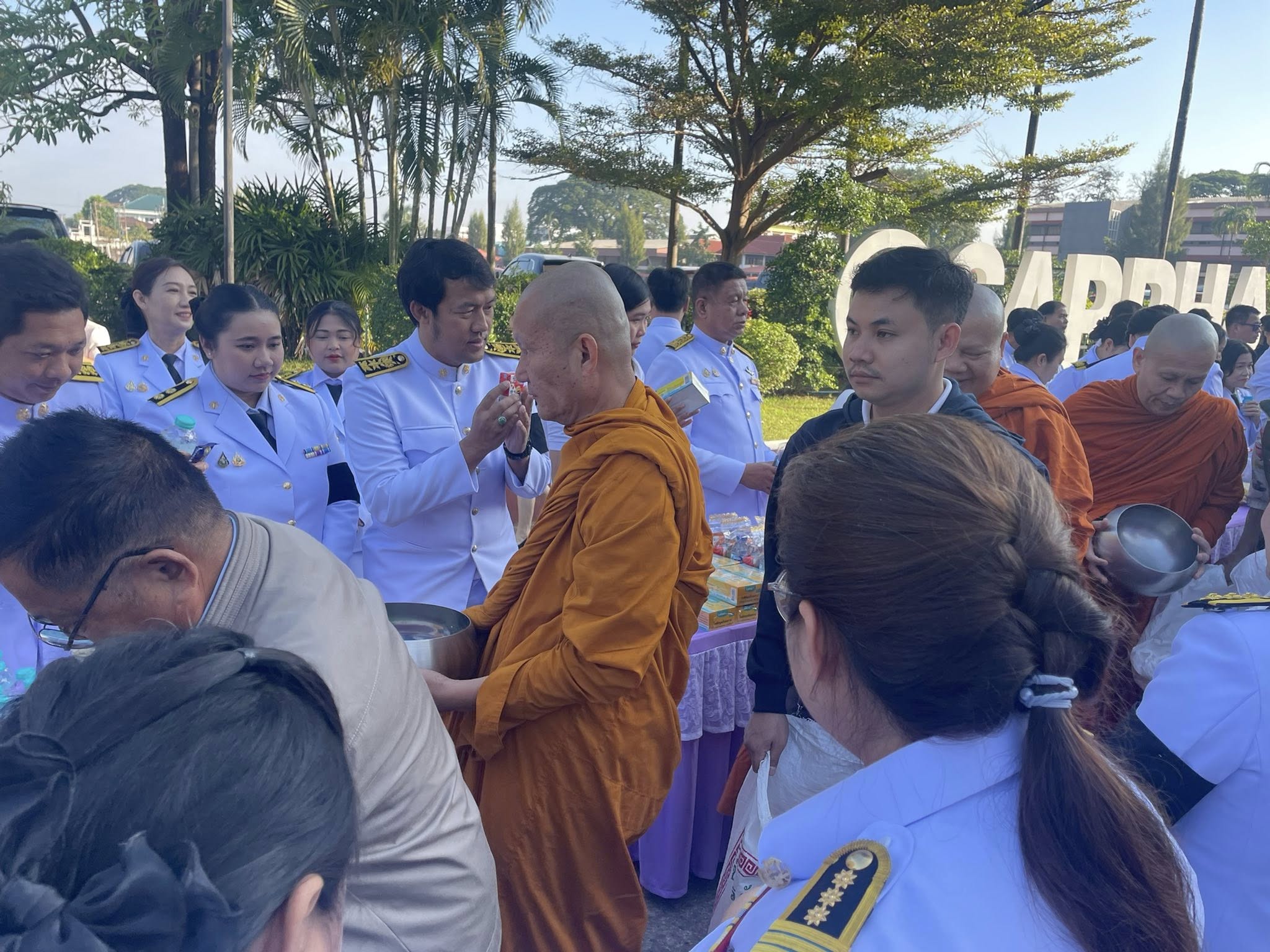 เมื่อวันที่ 5 ธันวาคม 2568 ผู้ช่วยศาสตราจารย์ ดร.วนัสนันท์ ศิริรัตนะ ผู้อำนวยการมหาวิทยาลัยราชภัฏกำแพงเพชร แม่สอด พร้อมด้วยผู้บริหาร และบุคลากรของมหาวิทยาลัยฯ เข้าร่วมพิธีเจริญพระพุทธมนต์และทำบุญตักบาตรถวายพระราชกุศล เนื่องในวันคล้ายวันพระบรมราชสมภพ พระบาทสมเด็จพระบรมชนกาธิเบศร มหาภูมิพลอดุลยเดชมหาราช บรมนาถบพิตร (วันชาติ และวันพ่อแห่งชาติ) 5 ธันวาคม 2568 ณ ห้องประชุมโรงเรียนสรรพวิทยาคม อำเภอแม่สอด จังหวัดตาก