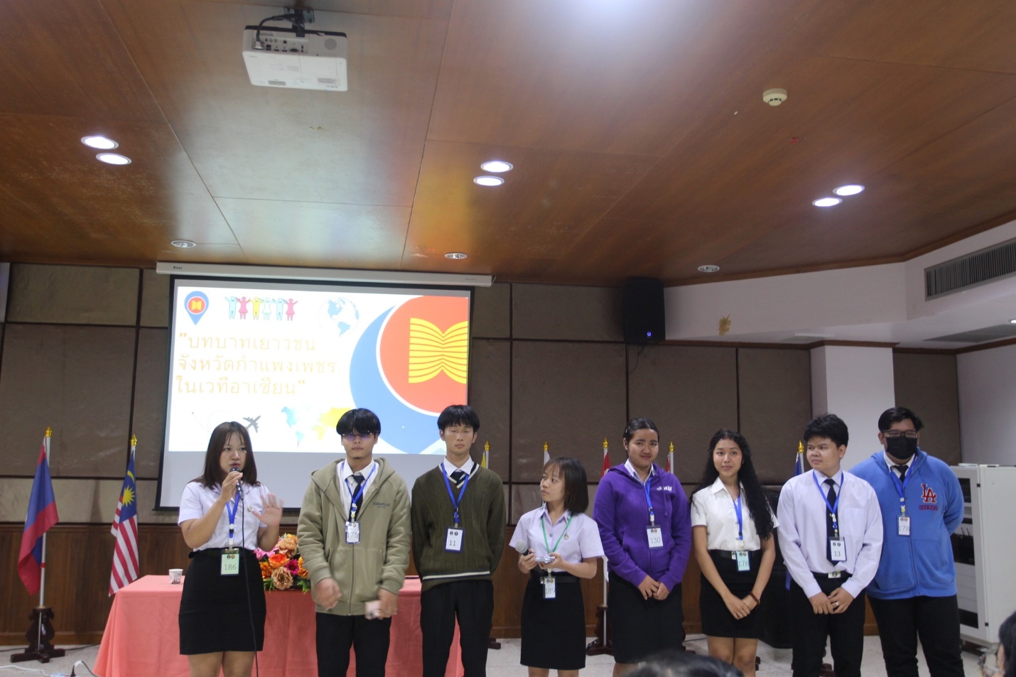 งานวิเทศสัมพันธ์และกิจการอาเซียน มหาวิทยาลัยราชภัฏกำแพงเพชร แม่สอดได้นำนักศึกษาจำนวน 9 คนเข้าร่วมกิจกรรมการตัดสินคัดเลือก Smart Youth Camp ในหัวข้อเรื่อง “บทบาทเยาวชนจังหวัดกำแพงเพชรในเวทีอาเซียน” ภายใต้โครงการพัฒนาประชาคมอาเซียนสู่คุณภาพในบทบาทเวทีโลก เมื่อวันที่ 17 มกราคม 2568 ณ ห้องกาซะลอง หอประชุมทีปังกรรัศมีโชติ มหาวิทยาลัยราชภัฏกำแพงเพชร โดยมีวัตถุประสงค์เพื่อสร้างความตระหนักในการเป็นประชากรอาเซียนและการพัฒนาทักษะที่จำเป็นในศตวรรษที่ 21 โดยเฉพาะทกษะด้านภาษาต่างประเทศ ภาวะผู้นำ และความกล้าแสดงออกในเวทีนานาชาติ ซึ่งมีโรงเรียนในพื้นที่การศึกษษมัธยมศึกษา กำแพงเพชร เขต 1 รวม 5 โรงเรียนเข้าร่วมกิจกรรมและจาก 6 คณะของมหาวิทยาลัยฯ รวมเป็นเยาวชนทั้งสิ้นซึ่งคณะกรรมการงานวิเทศสัมพันธ์และกิจการอาเซียน ได้คัดเลือกนักเรียนนักศึกษาจำนวน 50 คน แบ่งเป็นนักเรียน 10 คนและนักศึกษาจำนวน 40 คน เพื่อเข้าร่วมกิจกรรม ASEAN Young Leaders ณ สถานทูตในอาเซียน ซึ่งมหาวิทยาลัยราชภัฏกำแพงเพชร แม่สอดได้รับการคัดเลือกจำนวน 5 คน ได้แก่