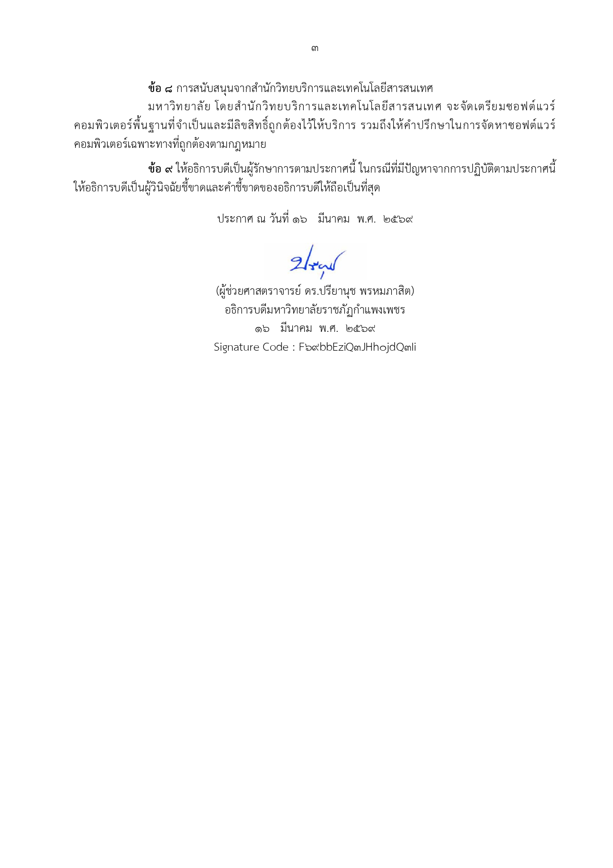 นโยบายการใช้ซอฟต์แวร์คอมพิวเตอร์ มหาวิทยาลัยราชภัฏกำแพงเพชร พ.ศ. 2569