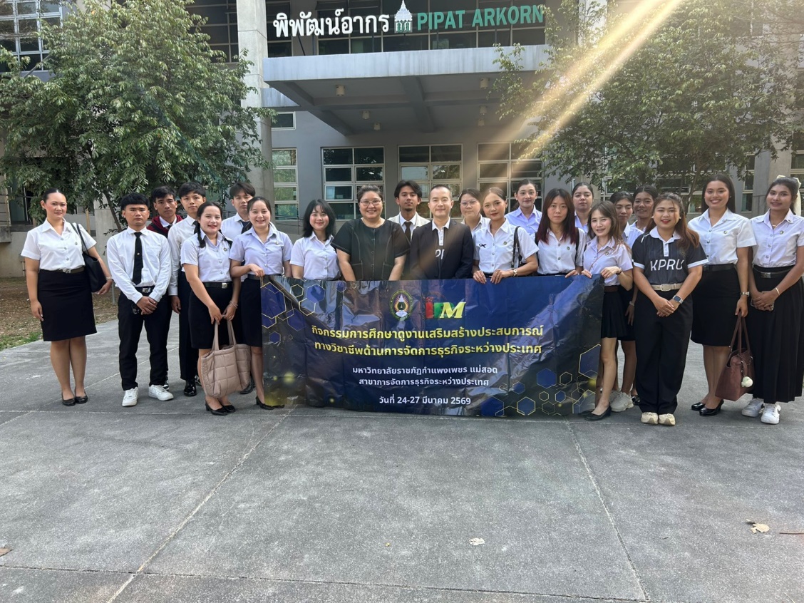โปรแกรมวิชาการจัดการธุรกิจระหว่างประเทศ มหาวิทยาลัยราชภัฏกำแพงเพชร แม่สอด ได้จัดกิจกรรมศึกษาดูงาน ระหว่างวันที่ 24–27 มีนาคม 2569 เพื่อเสริมสร้างประสบการณ์การเรียนรู้จากสถานประกอบการจริง และพัฒนาทักษะด้านการเป็นผู้ประกอบการให้แก่นักศึกษา