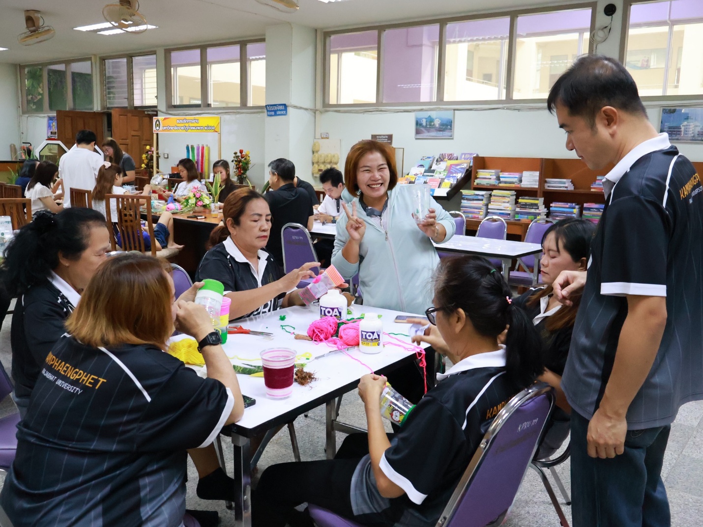 คณะกรรมการสภาคณาจารย์และข้าราชการ มหาวิทยาลัยราชภัฏกำแพงเพชรแม่สอด ชุดที่ 10 ร่วมกับห้องสมุด มหาวิทยาลัยราชภัฏกำแพงเพชร แม่สอด จัดกิจกรรม DIY แจกันใส่ต้นไม้ฟอกอากาศ ให้กับบุคลากรของมหาวิทยาลัยราชภัฏกำแพงเพชร แม่สอด ในวันศุกร์ ที่ 20 มีนาคม 2569 เวลา 10.00 – 15.00 น. ณ ห้องสมุดอาคารสิรินธร เพื่อเป็นการสร้างความมีส่วนร่วมของบุคลากร และเป็นการใช้วัสดุเหลือใช้นำกลับมาใช้ประโยชน์ใหม่ แจกันที่ทำขึ้นมอบให้บุคลากรได้นำไปใช้ใส่ต้นไม้ฟอกอากาศในหน่วยงานของตนเอง เพื่อเป็นการสร้างบรรยากาศในการทำงานและเป็นการประหยัดค่าใช้จ่ายของหน่วยงาน
